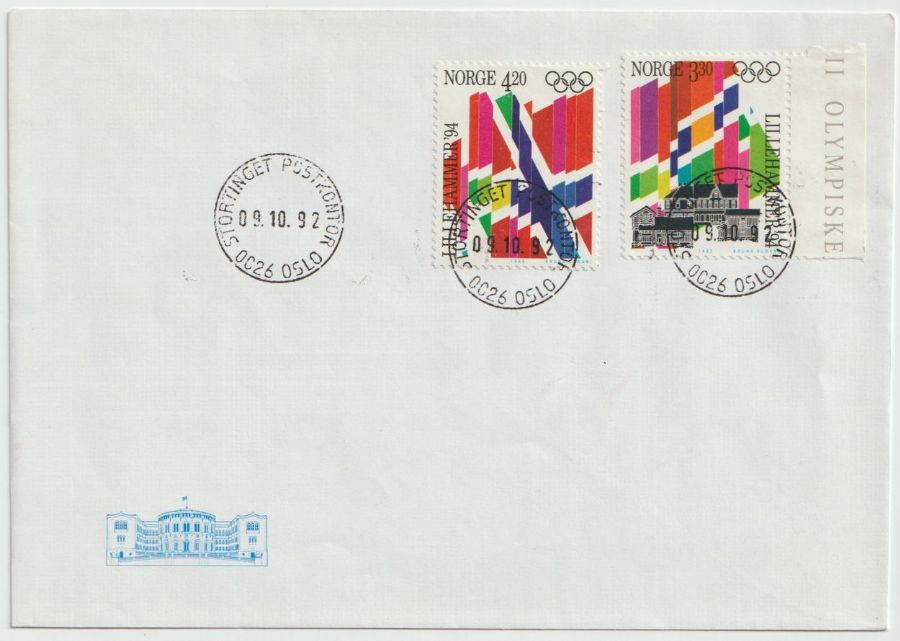 Blant annet et brev med stempel Østfoldutstillingen i Sarpsborg 1930, et postkort med Den norske Papirfiltfabrik i Drammen, og et førstedagsbrev stemplet Stortingets postkontor.
